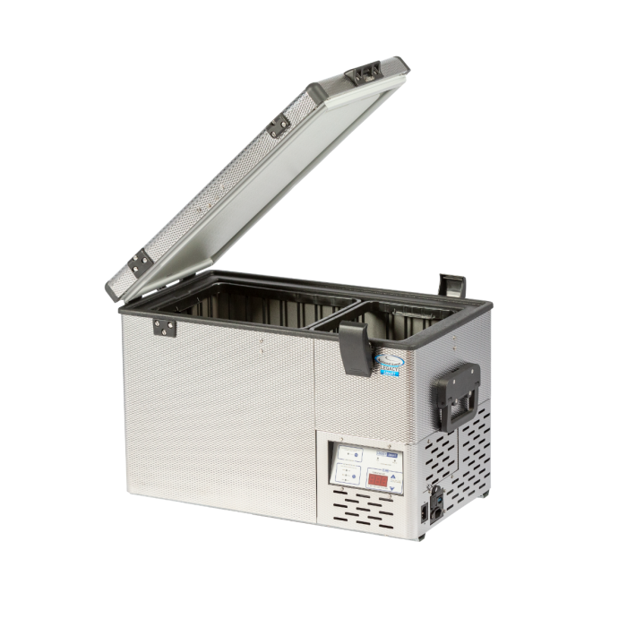 Das Gerät wird mit 12 Volt Gleichstrom betrieben und eignet sich daher für den Einsatz in vielfältigen mobilen Anwendungen. Darüber hinaus ist in unserem Webshop optional ein 230-V-AC-Adapter für noch mehr Flexibilität erhältlich. Für noch mehr Benutzerfreundlichkeit ist die NL Connect Bluetooth-App verfügbar, mit der Sie die Einstellungen direkt von Ihrem Smartphone aus anpassen und überwachen können. Selbstverständlich kann der Kühlschrank auch ohne Smartphone über das eingebaute Display bedient und überwacht werden, das ebenso wie die Scharniere des Deckels an der Vorderseite oder an der Seite des Geräts platziert werden kann. Um hohe Qualität und hervorragende Leistung zu gewährleisten, wird jeder produzierte Kühlschrank 5–7 Tage lang in einem speziell klimatisierten Raum bei National Luna in Südafrika gründlich getestet.