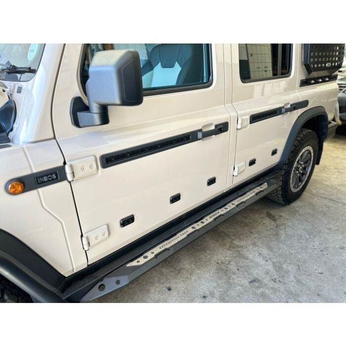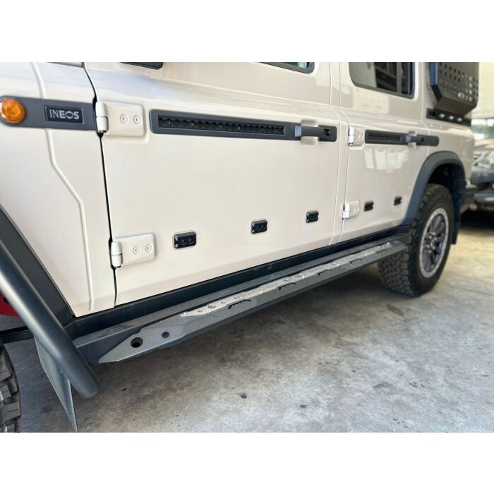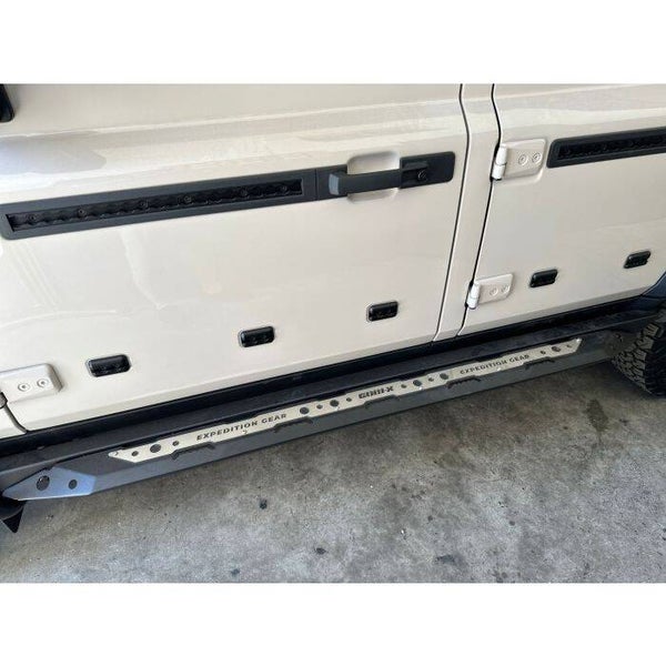 Alle Gobi-X-Produkte werden von Gobi-X-eigenen Designern entworfen und in Südafrika produziert. Das Material der Rockslider wird CNC-lasergeschnitten und gebogen, um höchste Präzision und Festigkeit zu gewährleisten. Für die Herstellung der Rockslider wird ausschließlich zertifizierter Stahl höchster Qualität verwendet. Alle Gobi-X-Produkte durchlaufen einen sechsstufigen Vorbehandlungsprozess, einschließlich einer abschließenden Metallphosphatbeschichtung zum Rostschutz. Im Anschluss an den Vorbehandlungsprozess erfolgt eine hochwertige Pulverbeschichtung für eine längere Lebensdauer. Die Gobi-X Rockslider werden mit dem Fahrgestell verschraubt, sodass kein Bohren erforderlich ist. Dadurch sind die Rockslider solide und äußerst stabil befestigt. Neben dem Schutz bieten die Gobi-X Rockslider auch einen stabilen Tritt.