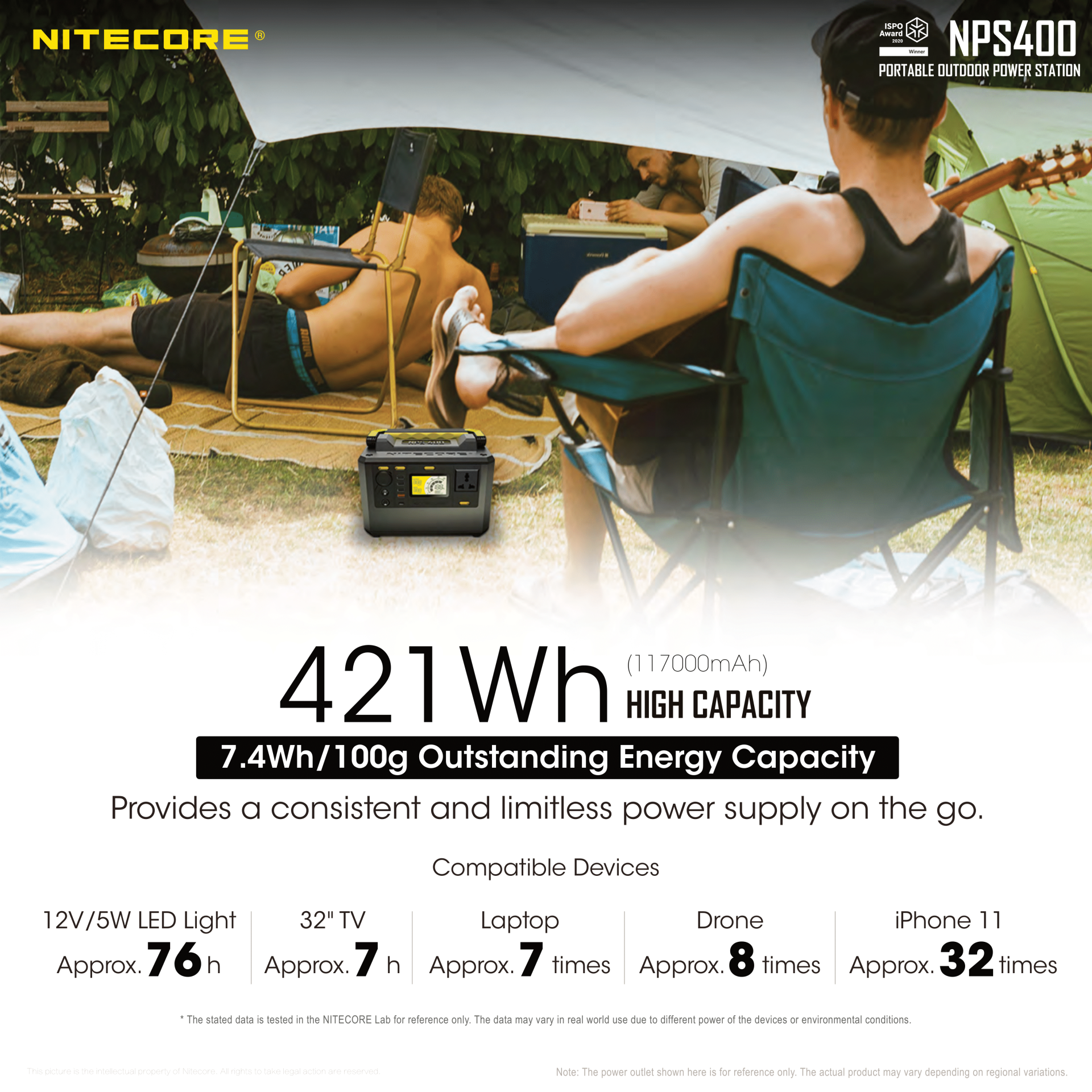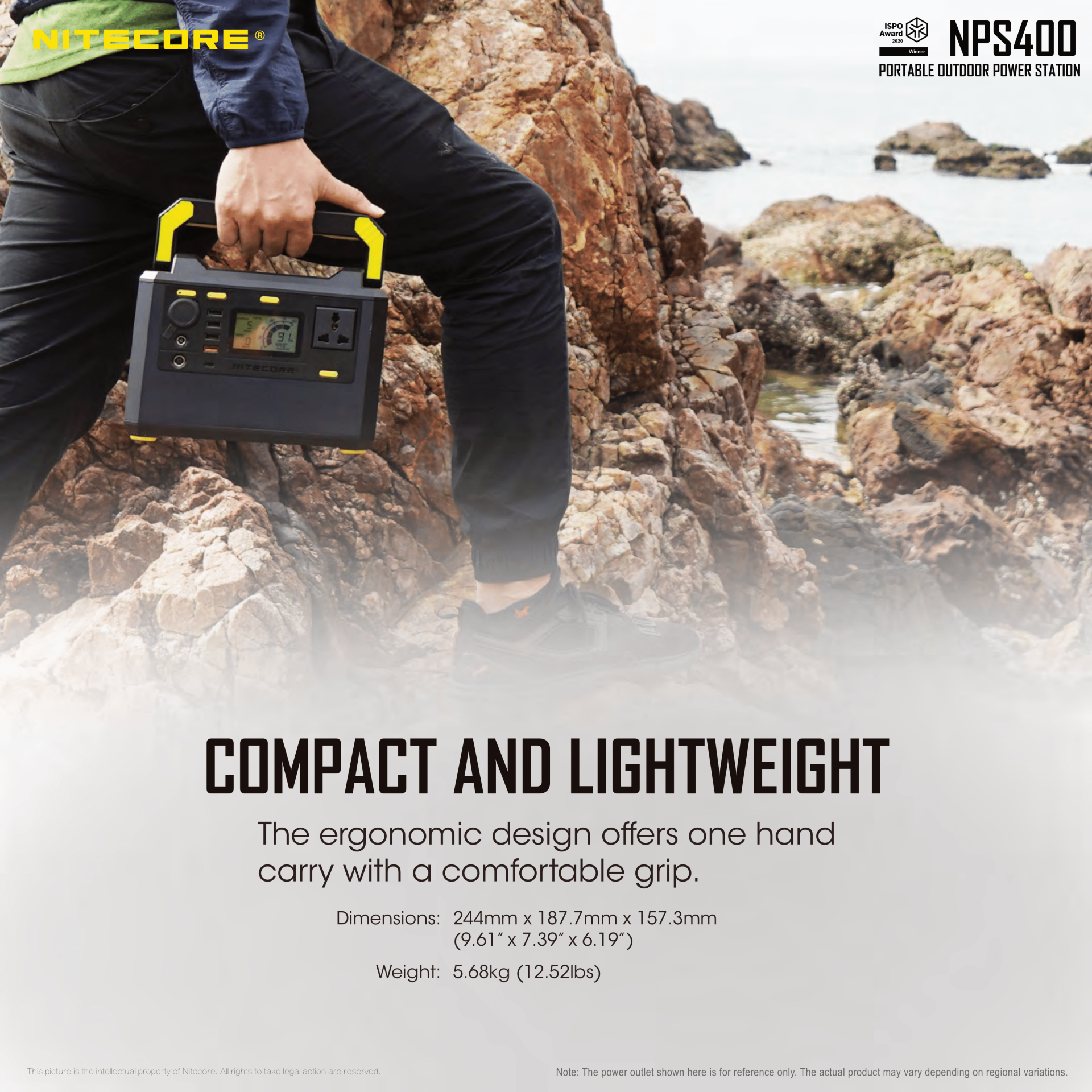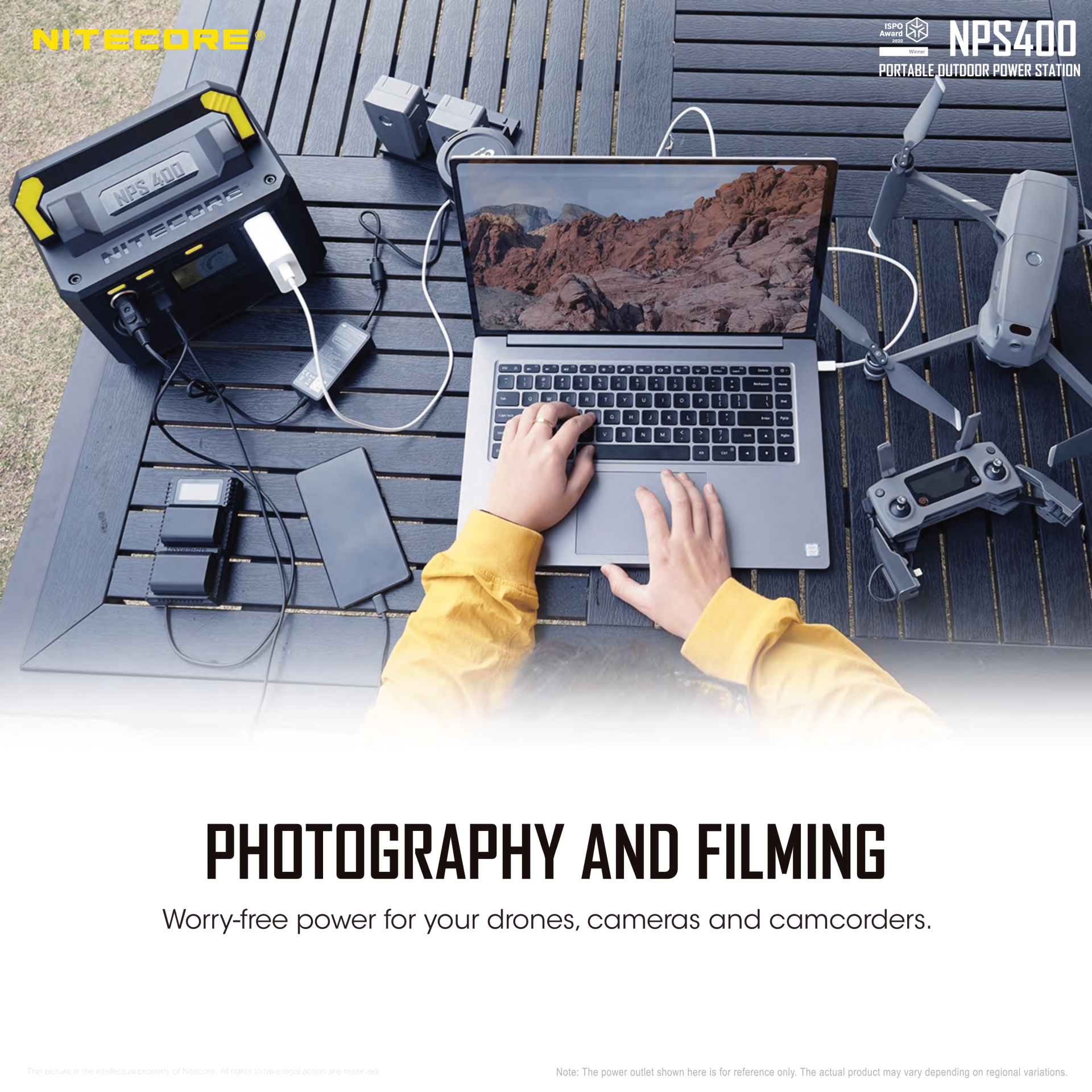 Die NPS-Powerstation lässt sich über das mitgelieferte Netzteil oder optional über ein Solarpanel laden (Solarpanel extra erhältlich). Die Nitecore NPS400 verfügt über folgende Ausgänge: 12V, USB, USB-QC, USB-C und 230V. Weitere Angaben können Sie bitte der BedienungsAnleitung entnehmen!