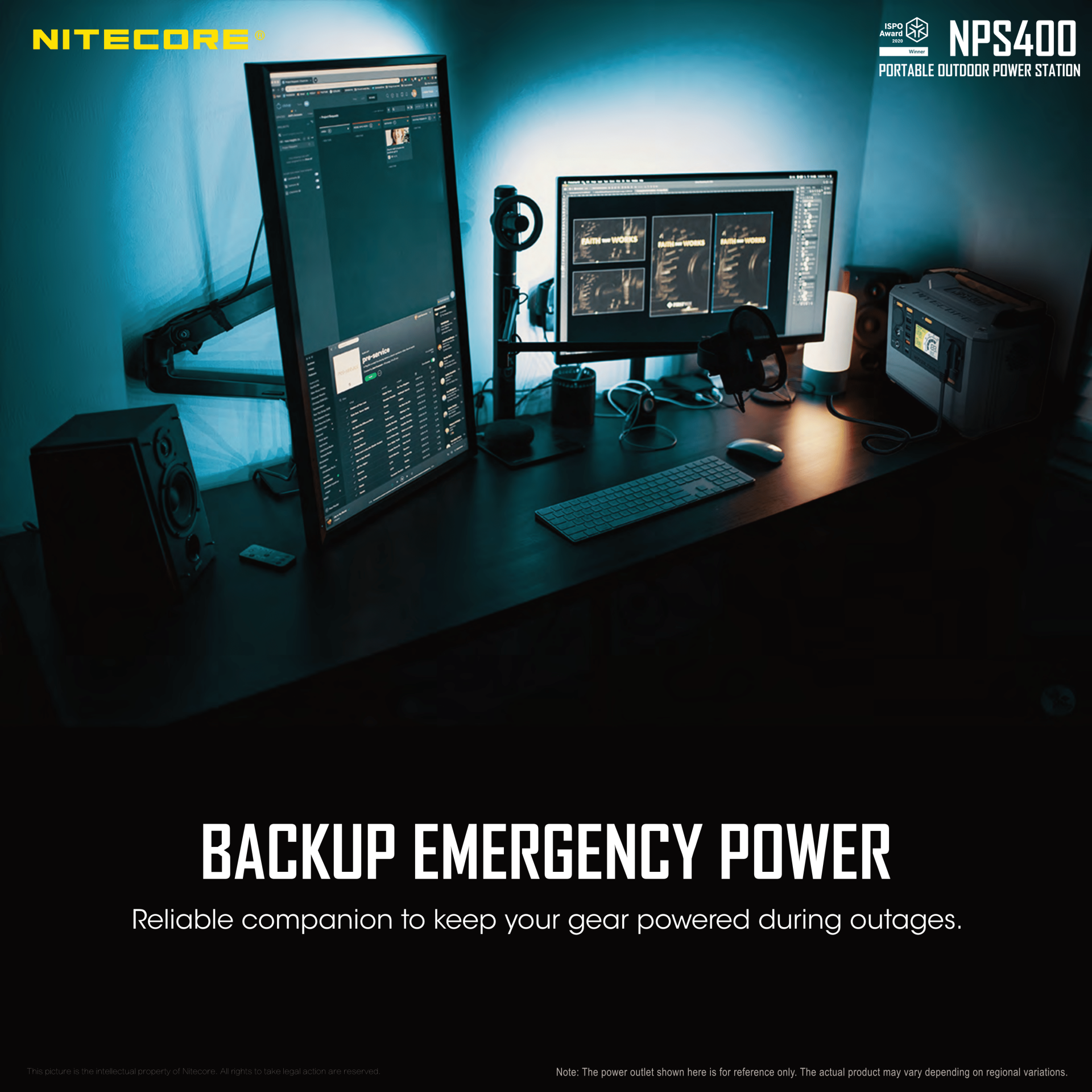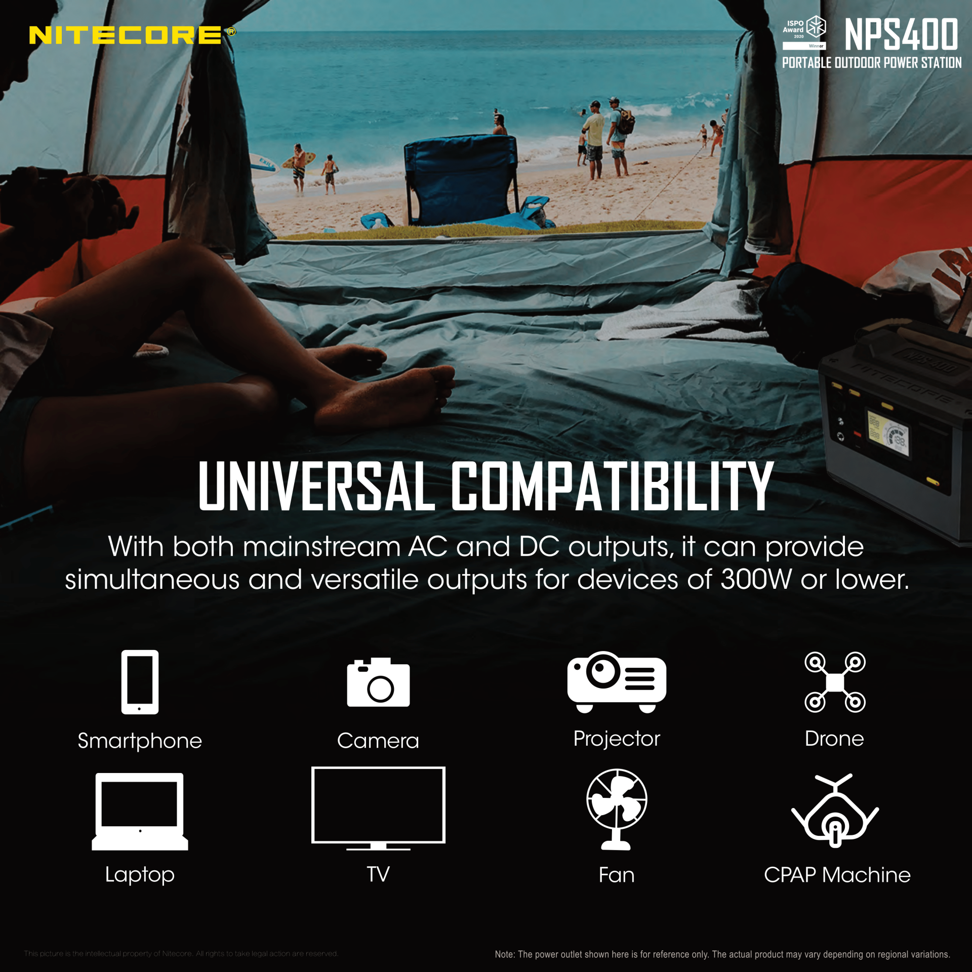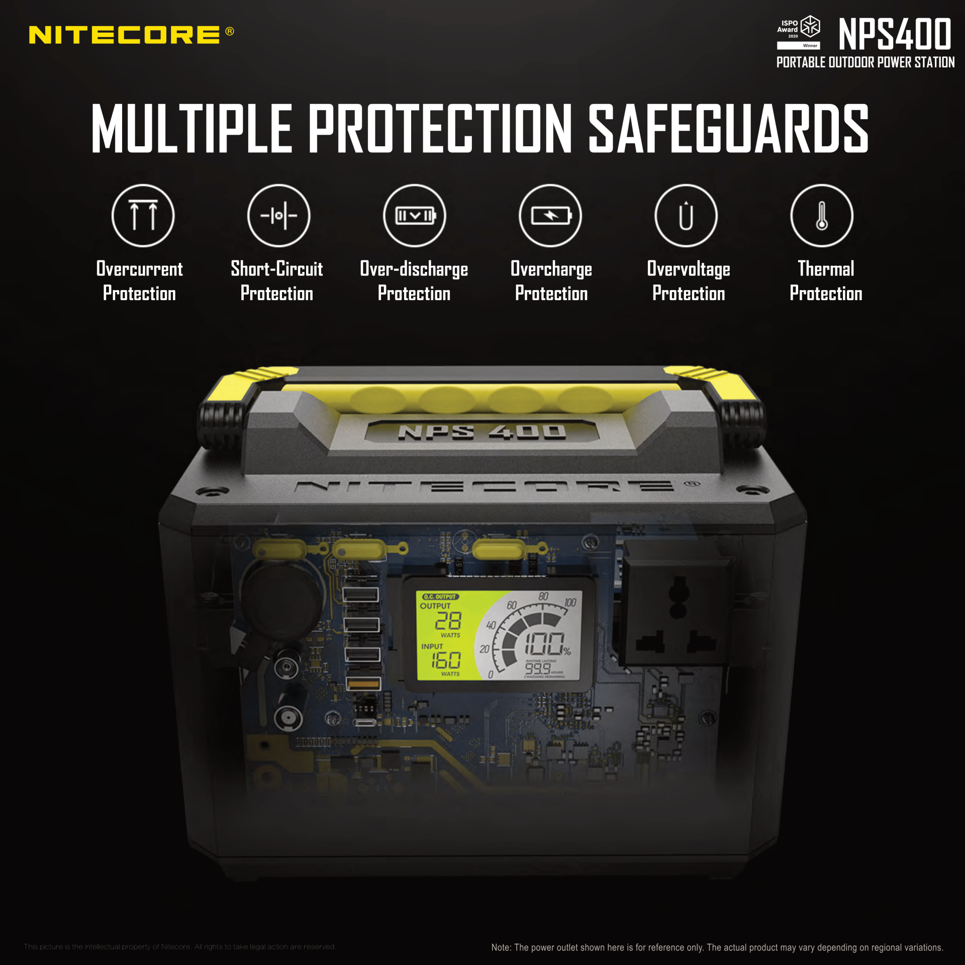 Die NPS-Powerstation lässt sich über das mitgelieferte Netzteil oder optional über ein Solarpanel laden (Solarpanel extra erhältlich). Die Nitecore NPS400 verfügt über folgende Ausgänge: 12V, USB, USB-QC, USB-C und 230V. Weitere Angaben können Sie bitte der BedienungsAnleitung entnehmen!