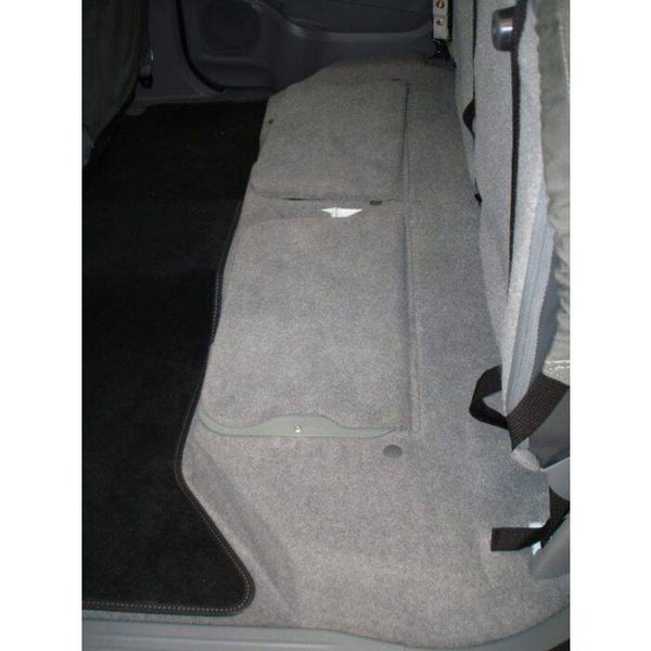 Im Toyota Hi Lux von 2005 bis heute befinden sich serienmäßig zwei Staufächer unter der Rückbank. Big Country hat den linken Stauraum so gestaltet, dass der Deckel abschließbar ist.